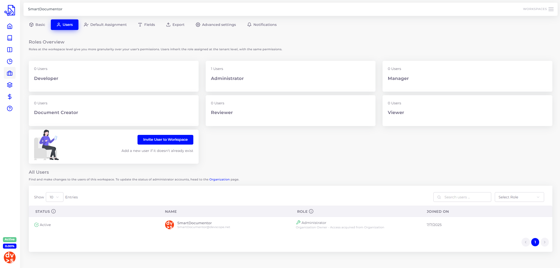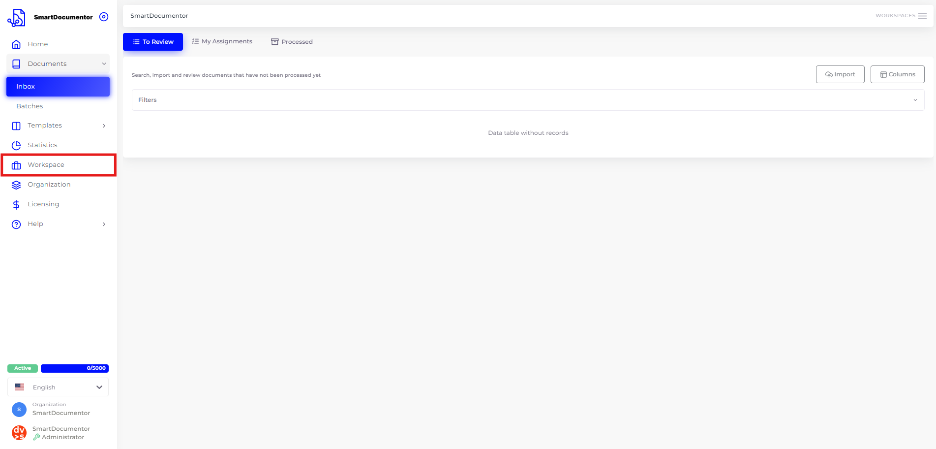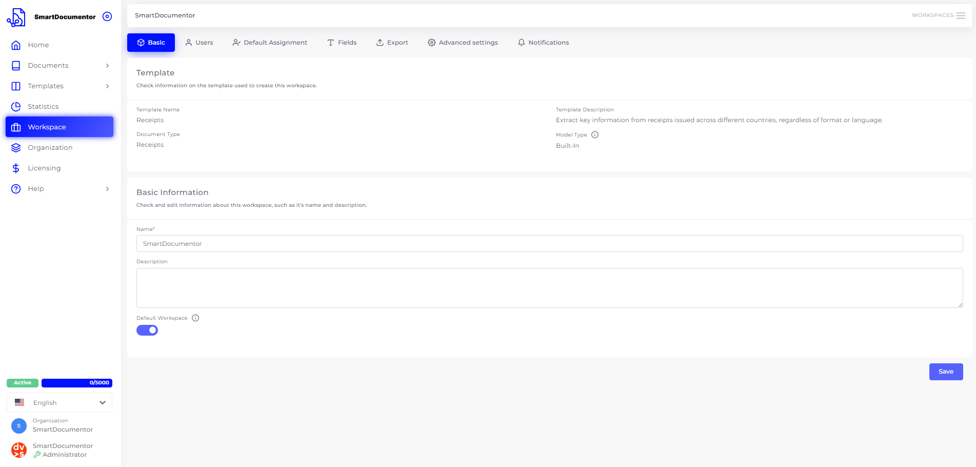 A workspace defines a set of file-processing rules and access permissions. Each workspace is created from a template, and SmartDocumentor currently supports the following templates: