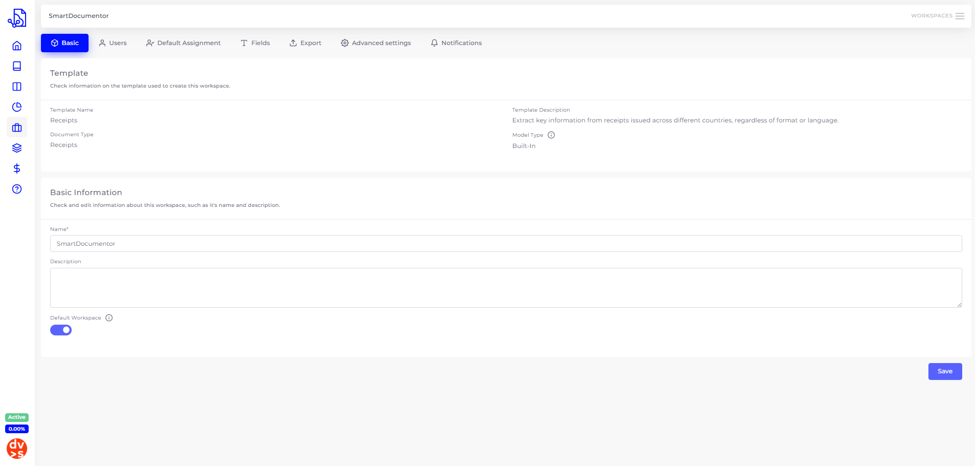This section stores information about the processing model selected when the workspace was created, along with the workspace’s basic details, which can be updated at any time.