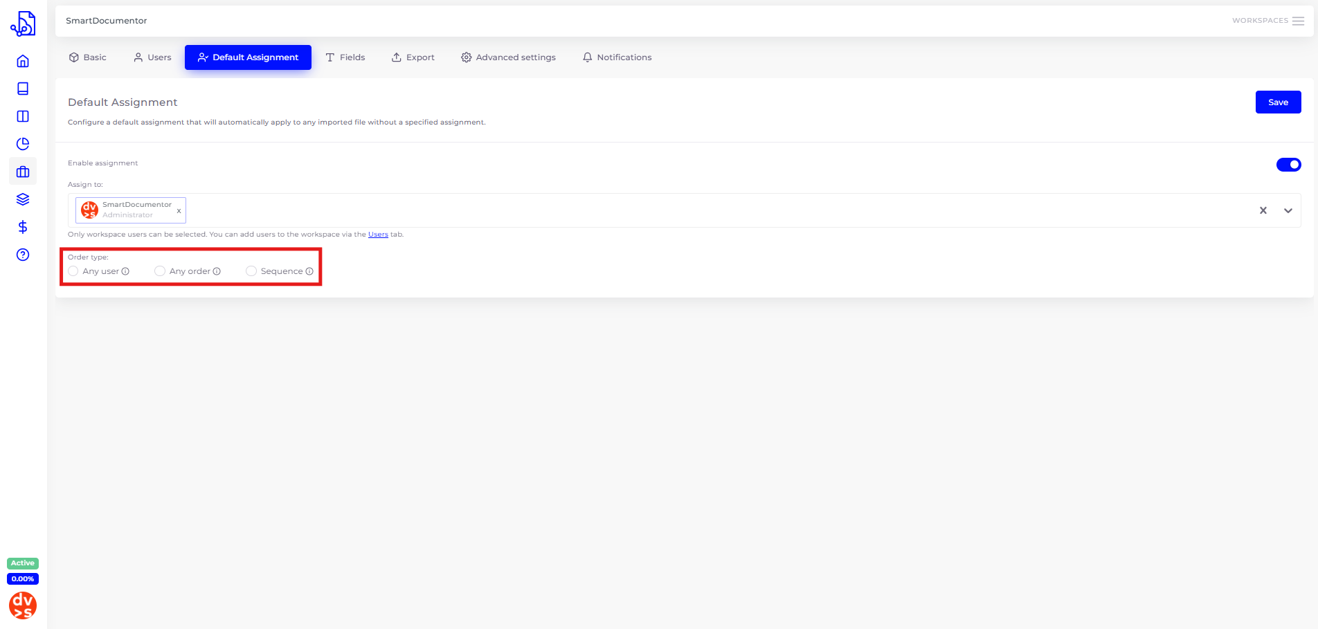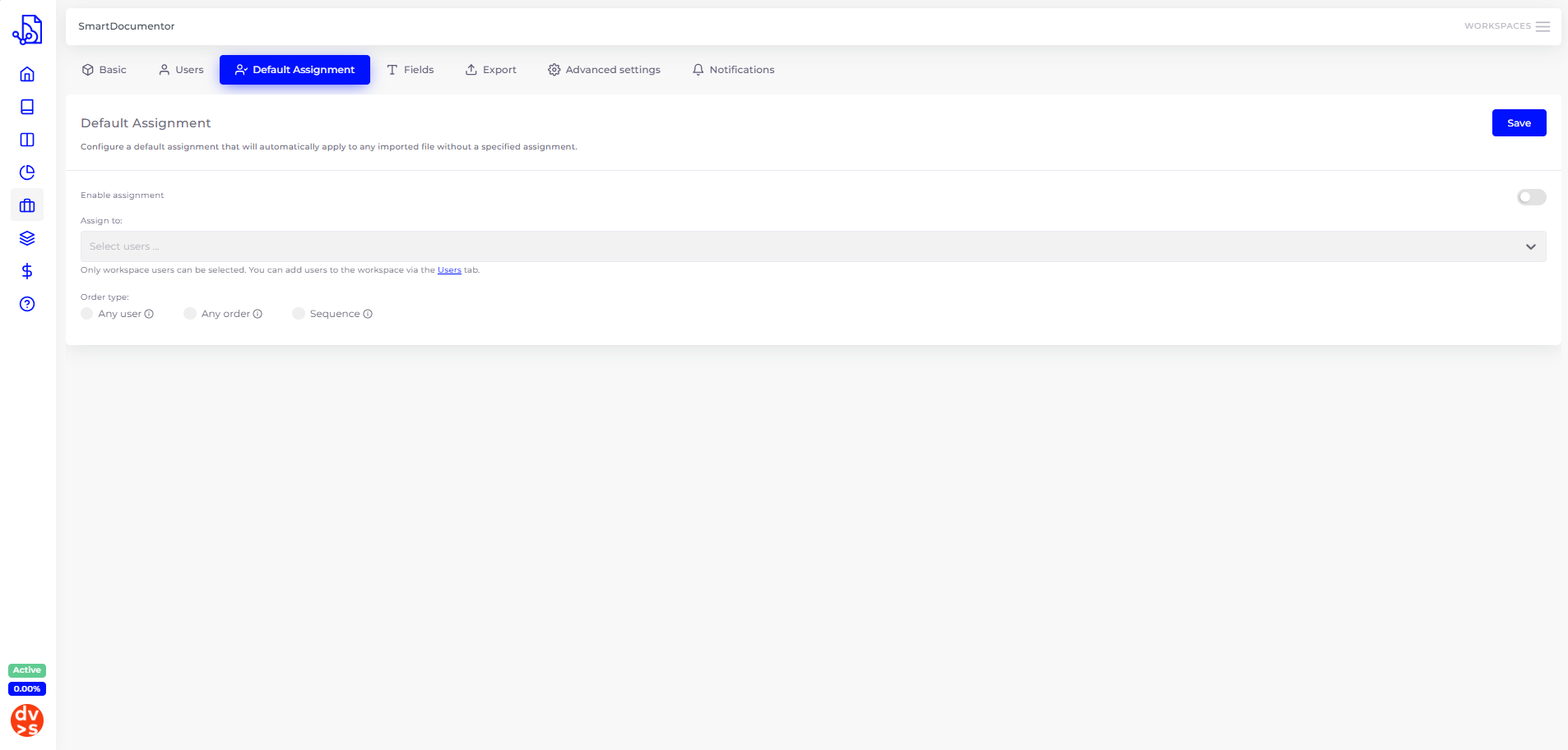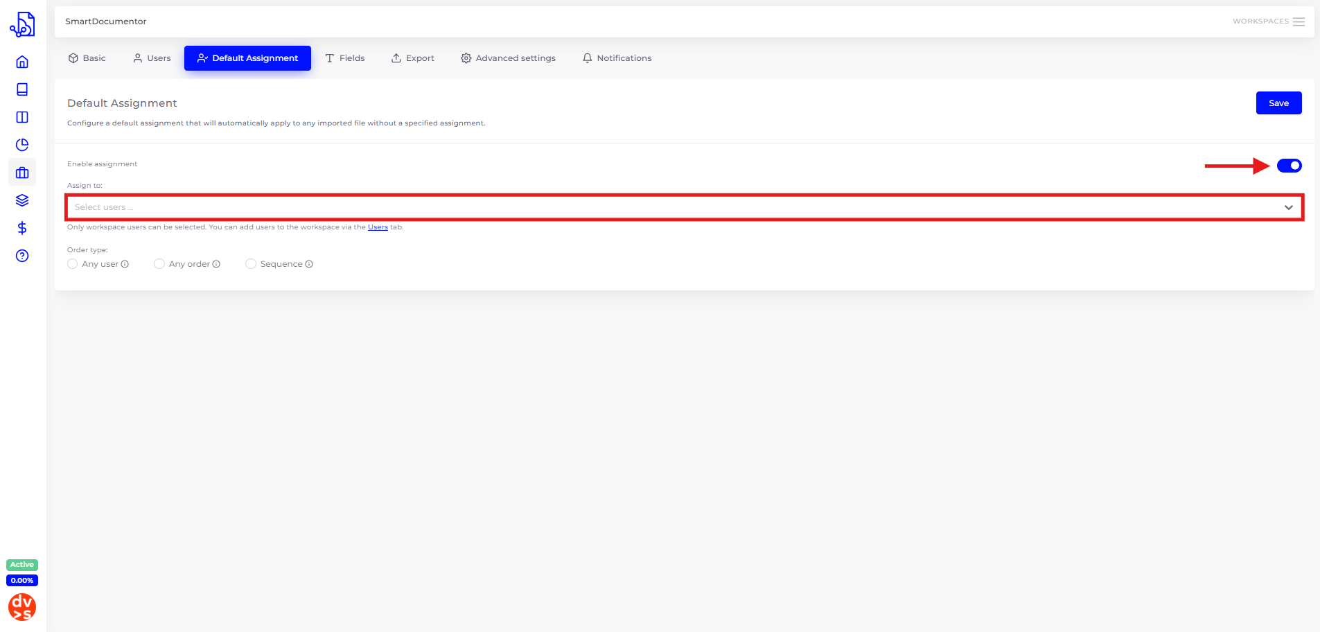 This section allows you to activate and configure the default assignment mechanism, allowing you to automatically assign revision tasks to specific users at the workspace level.