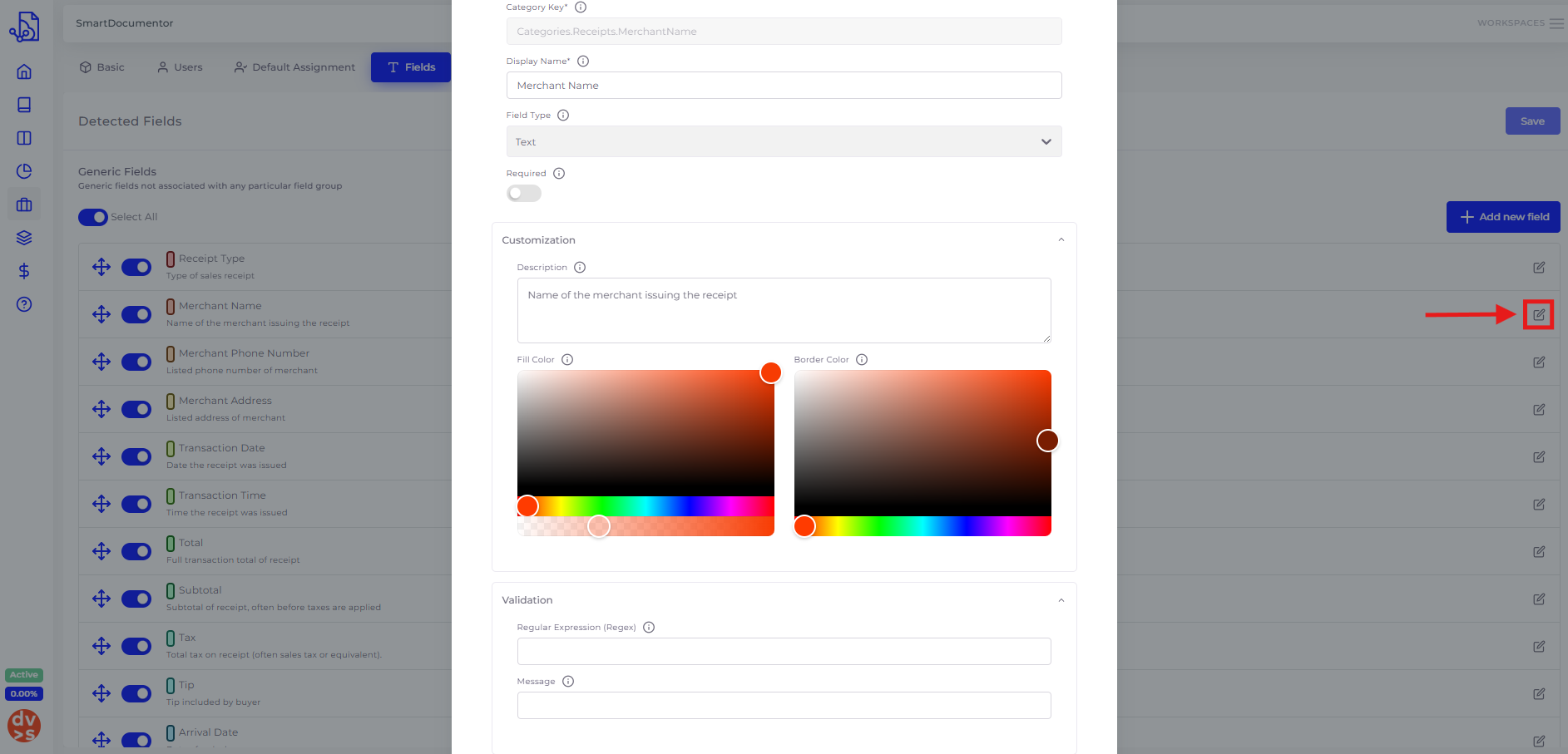 You can fully customize the platform’s available fields to match your specific requirements. Options include editing display names, setting requirement statuses, adding descriptions, adjusting colors (for generic fields), configuring validations (for generic fields), and specifying alternative headers (for table fields).