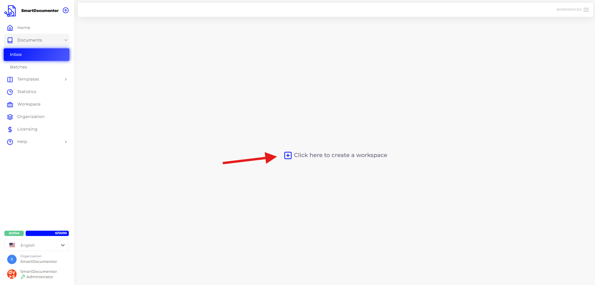 There are two ways of creating workspaces, one of which is only visible the first time a user logs into SmartDocumentor: