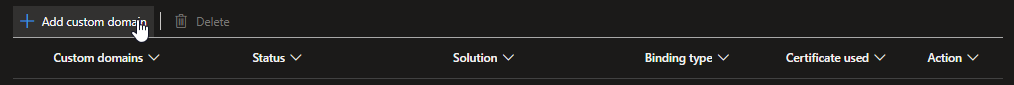 - Follow the instructions on the side panel to add your custom domain. Note that if you bring your own certificate, you are responsible for managing and updating the certificate when necessary.