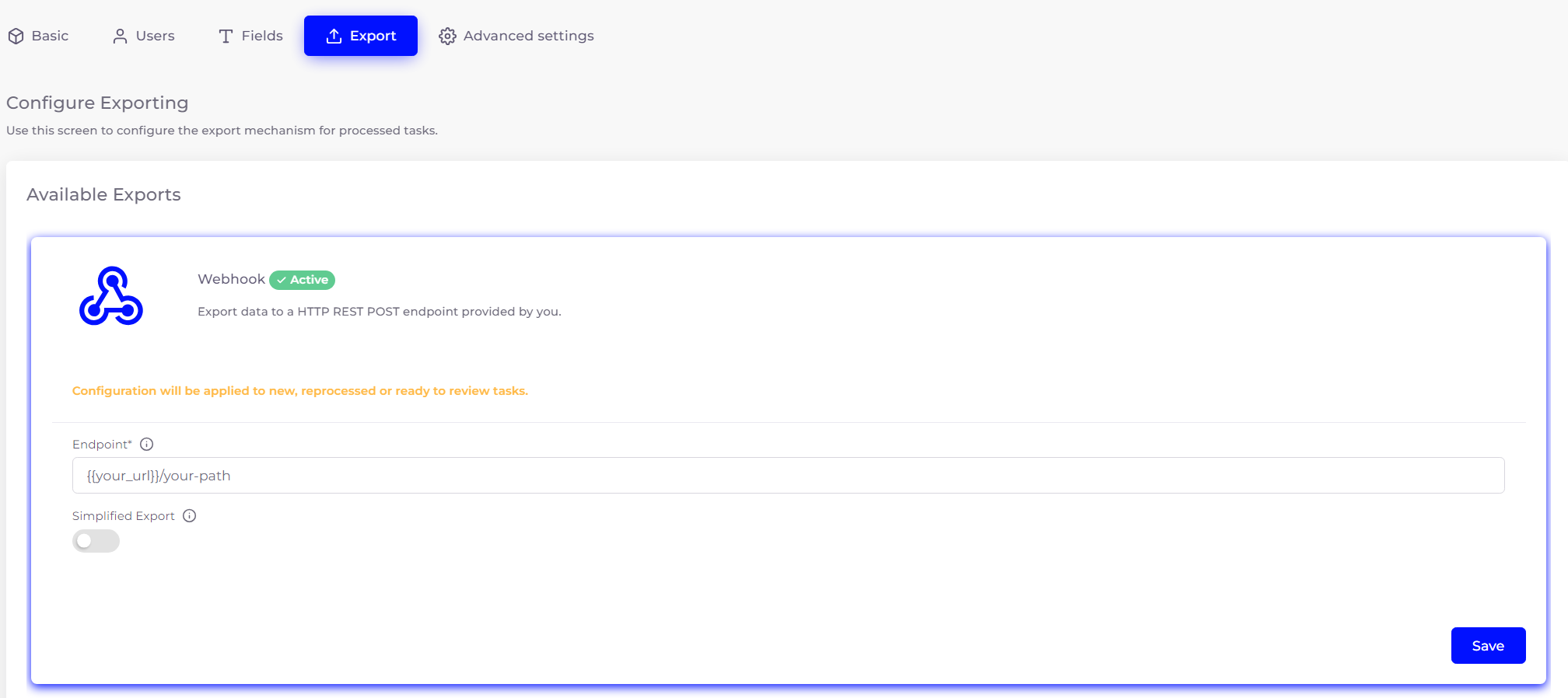 - Endpoint: a publicly available URL where SmartDocumentor can send notifications to. Notifications are sent as HTTP POST requests, with a JSON body.
