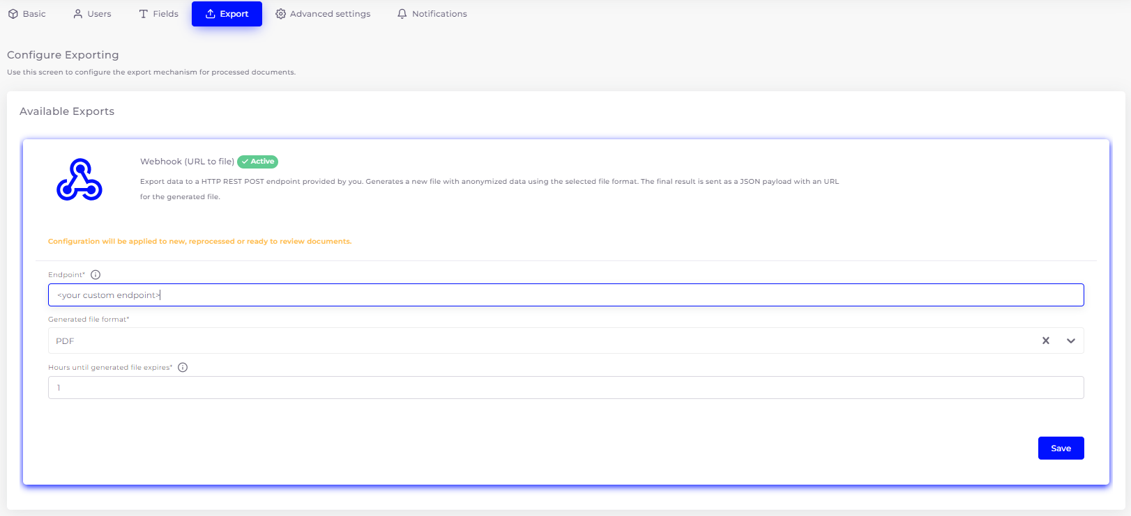 - Endpoint: a publicly available URL where SmartDocumentor can send notifications to. Notifications are sent as HTTP POST requests, with a JSON body.